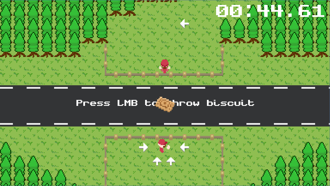 - Left mouse button: Throw biscuit